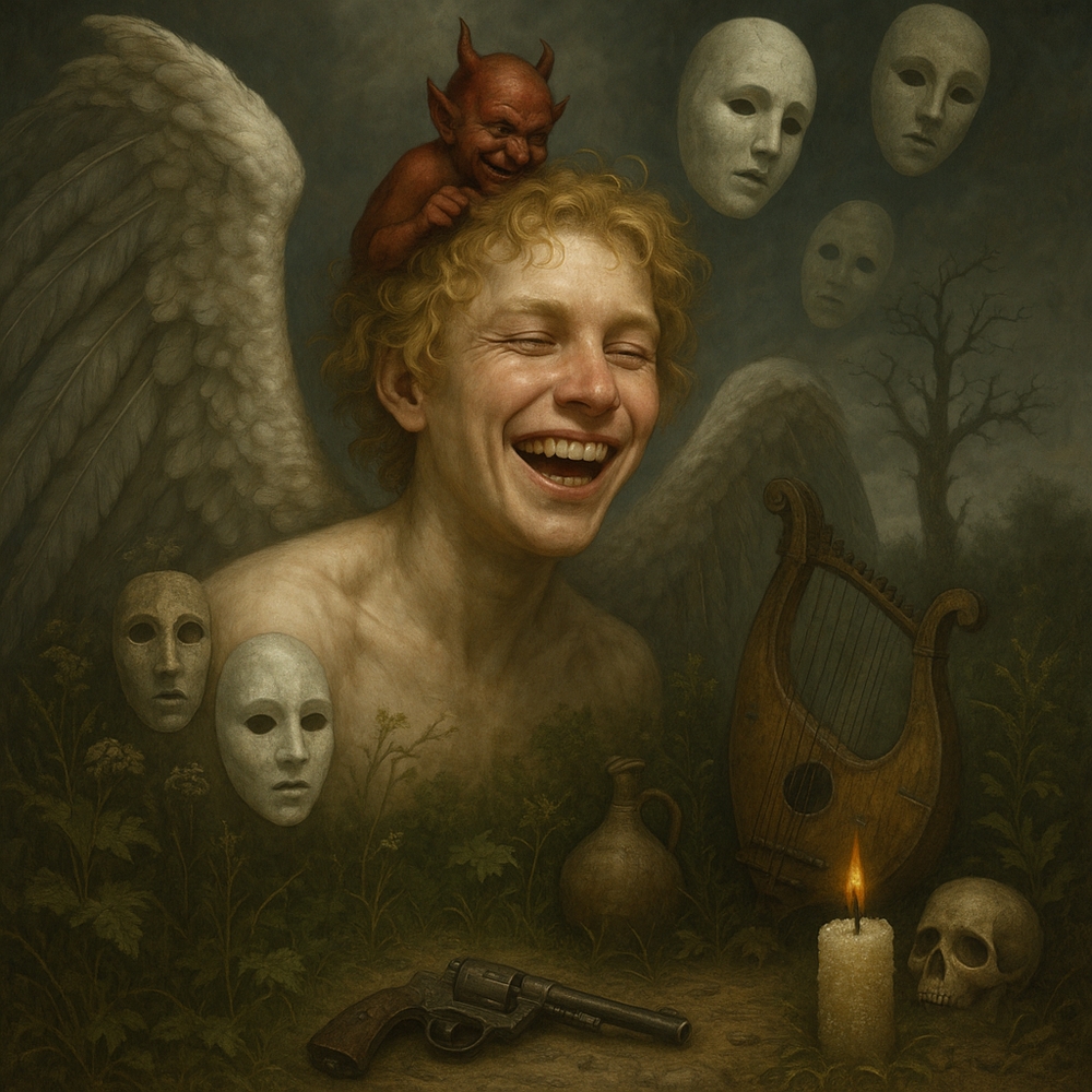 Символіка: У вірші багато символів, що виходять за межі буквального значення. Образ “Ангела, який сміється”, натякає на тонку грань між добром і злом. “Бог – то забутий біль” є глибокою думкою про те, що людина часто згадує Бога лише у стражданні.