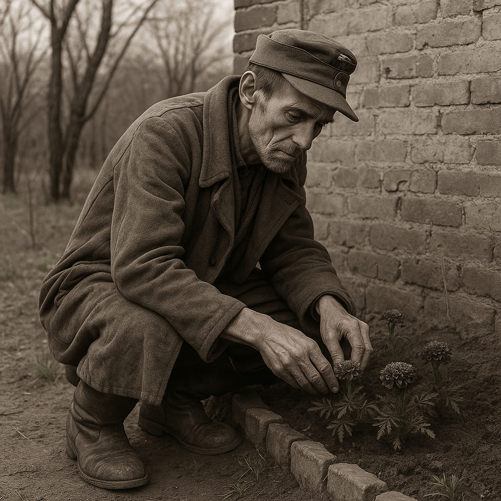 У повоєнному українському містечку полонені німці відбудовують зруйновані квартали. Один із них, хворий на сухоти Фрідріх, намагається створити красу посеред руїн — він садить клумбу з нагідками. Місцеві діти, сповнені ненависті до ворогів, жорстоко нищать його квіти. Поступово, однак, ставлення до полонених змінюється: вдови починають їх жаліти, а охоронець виявляє співчуття до хворого Фрідріха. Не витримавши фізичних і душевних страждань, Фрідріх накладає на себе руки. Через п’ятдесят років нові мешканці збудованого ним будинку випадково знаходять у стіні його сховок — фотокартку двох доньок, що стає німим свідченням його особистої трагедії та вічної батьківської любові.