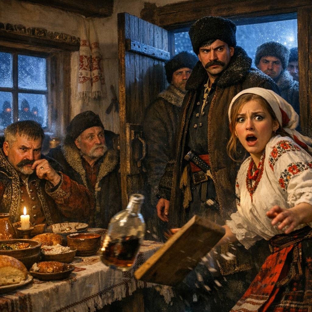 Сотник Хома Кичатий на Святвечір готується прийняти сватів від старого, але багатого чигиринського полковника, мріючи про владу та гроші. Його дочка Галя переконана, що свати будуть від її коханого Назара Стодолі, бо Хома раніше обіцяв їхній шлюб. Коли приходять справжні свати, а слідом за ними — Назар із колядниками, обман розкривається, і сотник виганяє хлопця з хати. Назар у розпачі хоче вбити полковника, але його друг Гнат Карий пропонує інший план — викрасти дівчину. На вечорницях вони підкуповують ключницю Стеху, яка допомагає Галі втекти до старої корчми, де їх чекає Назар. Проте Хома дізнається про втечу, наздоганяє їх у корчмі, зв’язує Назара і наказує побити його, погрожуючи смертю. У вирішальний момент з’являється Гнат із козаками, звільняє друга і змушує Хому каятися під загрозою зброї. Побачивши щирість почуттів молодих і власну поразку, Хома Кичатий благословляє Назара та Галю, а сам вирішує піти в монастир. Твір завершується перемогою кохання та козацької честі.